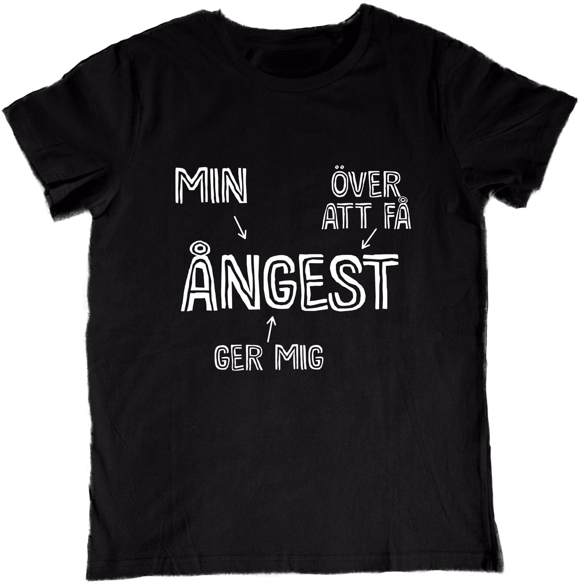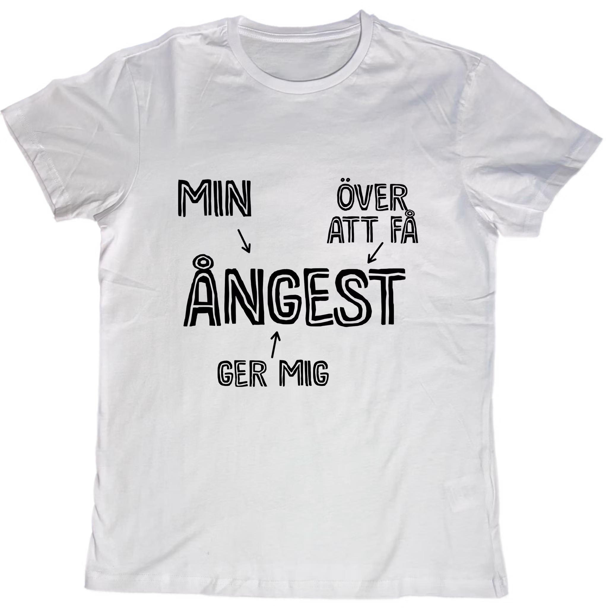 När livet blir lite väl meta – varför inte möta det med en dos humor? Den här t-shirten med trycket 'Min ångest, över att få ångest, ger mig ångest' är den perfekta konversationsstartaren. Gjord i mjuk bomull, erbjuder den både komfort och en unik möjlighet att låta din självdistans lysa.